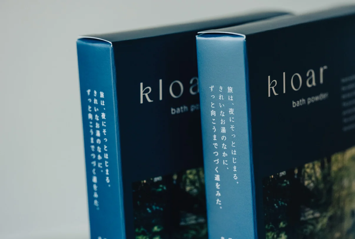 スキンオイルに続いて生まれた、Kloarオリジナルバスパウダー。湯に溶けた瞬間、黒川の露天を思わせる静けさが、ゆっくりとひらく。忙しさを脱いで、湯に身をゆだねる。今日の疲れがほどけるころ、あなたの旅は、また静かに動き出す。黒川温泉の湯と森からうまれた一包が、穏やかな夜に、そっと寄り添いますように。